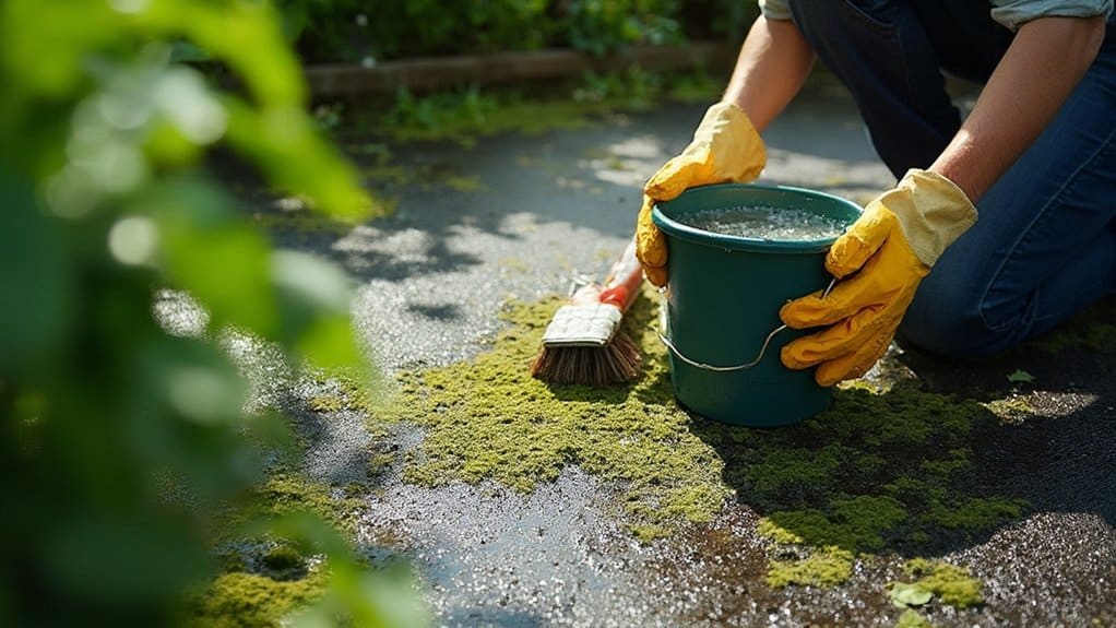 To effectively remove moss and algae from your driveway, try using baking soda to adjust the pH, which can help prevent regrowth.